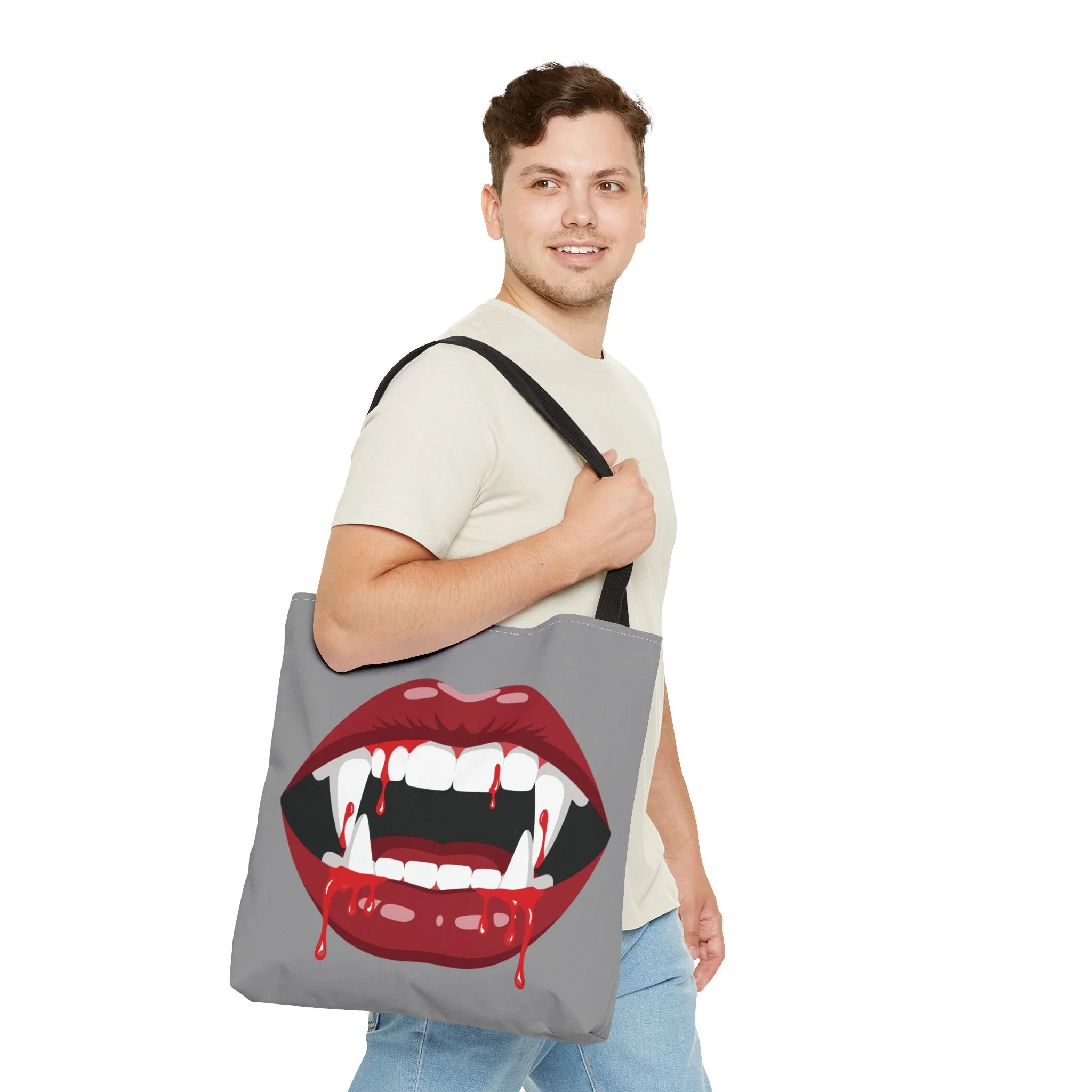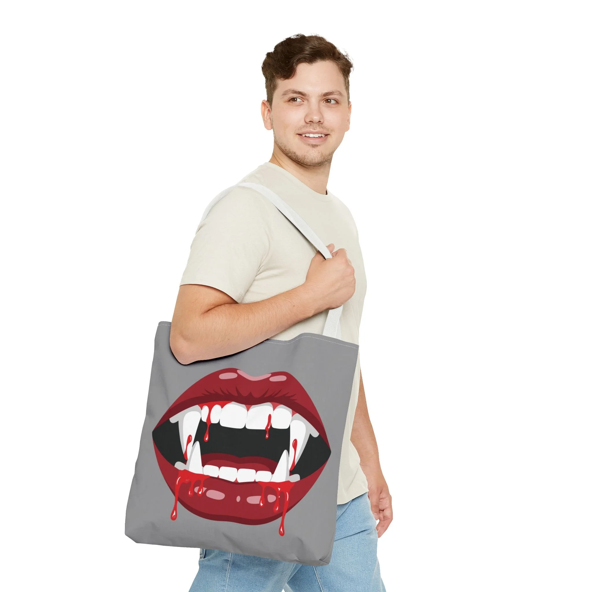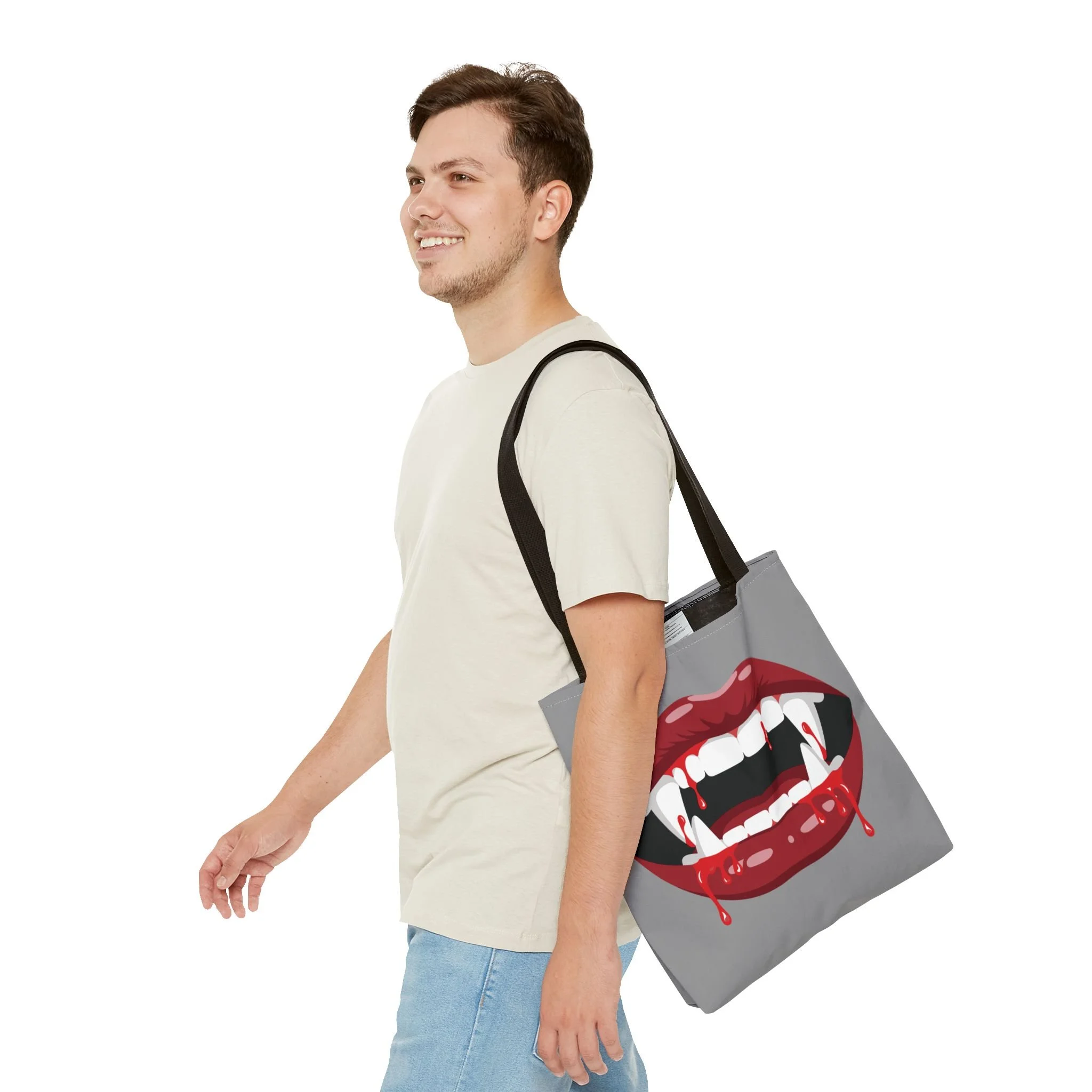 Available in 3 sizes to add both functionality and style, these custom-printed tote bags come with multiple handle colors to match your designs. Made with spun polyester, these bags feature double-stitched seams, cotton webbing straps, and nonwoven laminate lining for high-end durability. Your all-over print is created with dye sublimation for high-end visuals.